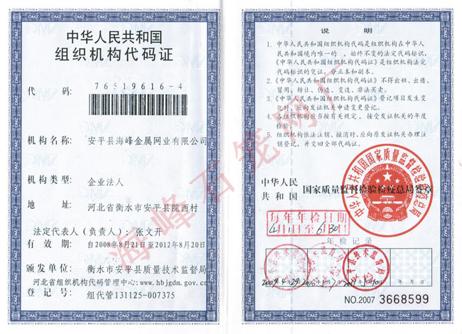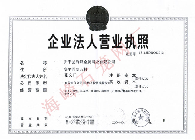 - 安平縣海峰金屬網(wǎng)業(yè)有限公司 安平縣海峰金屬網(wǎng)業(yè)有限公司位于中國著名的“絲網(wǎng)之鄉(xiāng)”——河北省安平縣,是具有拉絲織網(wǎng)、焊接、剪裁、噴塑、浸塑成品等一整套生產工藝的專業(yè)化廠家。本公司經過多年來的順勢發(fā)展,現(xiàn)已擁有廣闊的生產廠房和優(yōu)良的辦公環(huán)境,占地8500平方米,在廠職工100余人。擁有高深的技術人員,高端的生產設備,全自動的機械化生產流水線,站在了軋花網(wǎng)、石籠網(wǎng)同行業(yè)的頂端。 查看更多>>